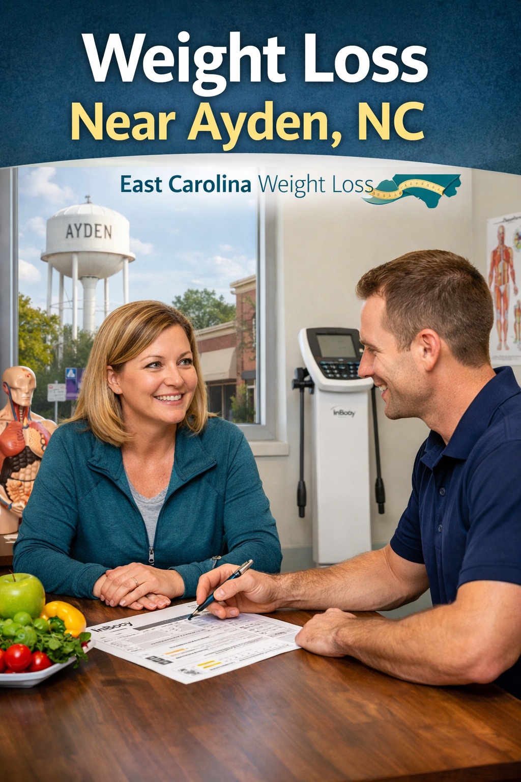 Looking for weight loss near Ayden, NC? East Carolina Weight Loss serves adults in Ayden and nearby Pitt County communities with a practical, coached plan built around nutrition, habit change, and scan-guided progress. No crash dieting. No gimmicks. Just a clear process you can follow.